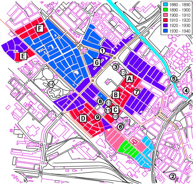 blokken huizen in de vorm van zogenaamde tuindorpen of –steden onder de naam ‘De Kleine Woningwijk’. In 1915 wordt het 1000-woningenplan gelanceerd voor de rest van de wijk.